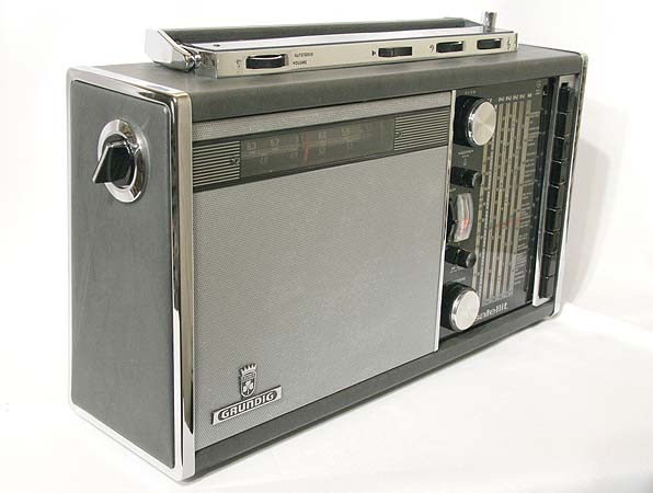 Grundig Satellit 205 Grundig proudly introduced the world receiver to the public in 1964. Immediately accepted as the standard of the industry this radio with it's 10 shortwave ranges stood without par (1.6-30 mhz). This first in a long line of great and successful series of top of the line travel receivers Built between 1964 and 1966 this radio was also available in an amateur with a specially fitted drum tuner (Grundig Satellit 205a Amateur).